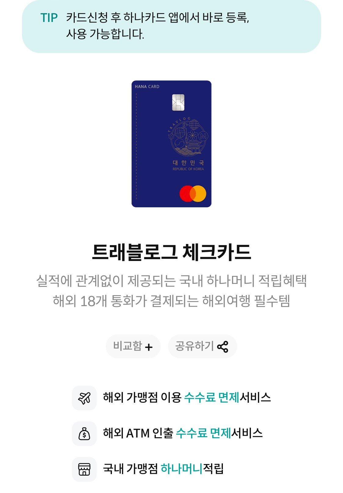 1. 트래블로그 - 하나카드 (체크카드와 신용카드), 마스터카드