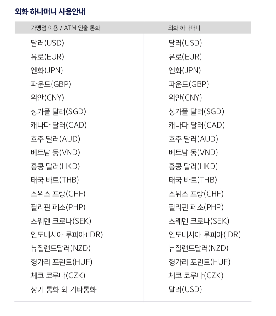 인출시 수수료 무료 (한도는 각 통화별로 다름)